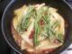 Week voor de slavinken een stukje suikerbrood ca. 5 minuten in de melk en knijp goed uit. Meng het gehakt met het suikerbrood, de kerriepoeder, 1 tl. zout & peper en pers hierboven een teentje knoflook uit. Verdeel het gehakt in 8 gelijke porties en vorm ze in korte, dikke worstjes. 24 lange plakken ontbijtspek Gebruik per slavink 3 plakken ontbijtspek en wikkel het spek om de gehakt worstjes. Bak de slavinken aan iedere zijde in één minuut bruin en bak nogmaals met de deksel op de pan en op laag vuur ca. 8 minuten.