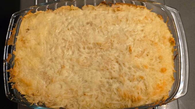 Leg een laagje aardappelpuree in een ovenvaste schaal, gevolgd door het shoarmavlees. Voeg vervolgens de zuurkool toe en weer een laagje aardappelpuree erbovenop. Strooi als laatste een zakje geraspte kaas over de schaal.